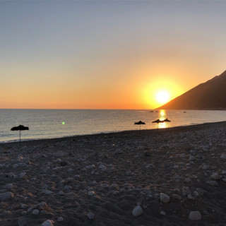 Nachdem dies erledigt war machten wir uns auf die Suche nach einem Übernachtungsplatz und fanden auch eine schöne Bucht, die im I-Overlander als lohnenswert beschrieben war. Als wir dort auftauchten befanden sich schon 3 Camper dort. Der Platz füllte sich bis am Abend, schlussendlich zählten wir 14 Camper auf diesem wilden Stellplatz und ein Gefühl von Platzangst machte sich breit. So verliessen wir am nächsten Morgen in aller Frühe den Ort und fuhren in Richtung Fier, wo sich ein Kilometer langer Strand befindet, der befahren werden darf. Dort trafen wir auch unsere Reisebekannten Rolf und Luky wieder, beides passionierte Kite Surfer und verbrachten mit den beiden einen schönen und fröhlichen Abend. Am nächsten Tag verabschiedeten wir uns von den beiden und fuhren weiter in Richtung Durres, wo wir uns auf einem Camping direkt am Strand einquartierten. Der Besitzer hat sich hier ein kleines Paradies geschaffen und eine kleine Insel gebaut, auf der sich ein Restaurant befindet. Herrlich, es kam wieder etwas Karibik Feeling auf.